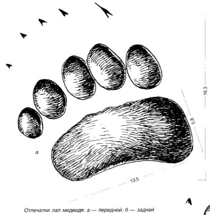 Медведь ведет в основном ночной и вечерний образ жизни. Следы, оставленные медведем легко заметить и спутать их с другими тяжело. Можно также встретить следы медведя и на деревьях.